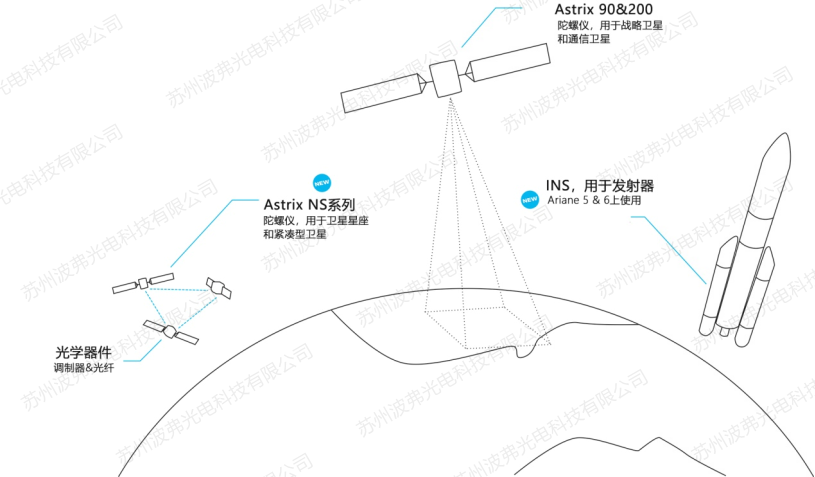 iXblue积累了大量的FOG应用在宇航领域的经验,同时开辟了宇航器件市场,如无源器件和掺杂光纤,以及铌酸锂电光相位和强度调制器。