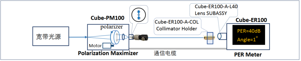 在测量保偏器件的偏振消光比(PER)时 ,较低的光源线偏振度 ,以及线偏振光与保偏光纤光轴之间的对轴角度偏差是PER测量误差的主要来源。为了最大限度的消除这两种测量误差源, 本公司自豪地推出了业界首个自动化偏振消光比测量系统。