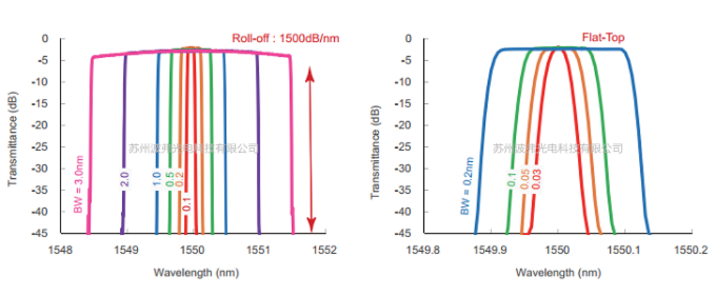 TFF系列: 中心波长波段可选:1060nm波段/1310nm波段/1550nm波段;3dB带宽固定:1nm,3nm可选